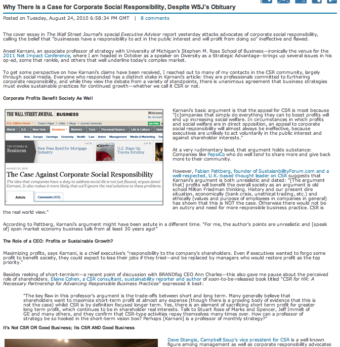 Originally written for and published on CSRwire’s Commentary section Talkback on September 5, 2013.